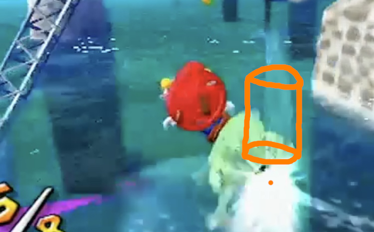 - Jump dive over the red button and press Y to orient towards the green blooper and ground pound